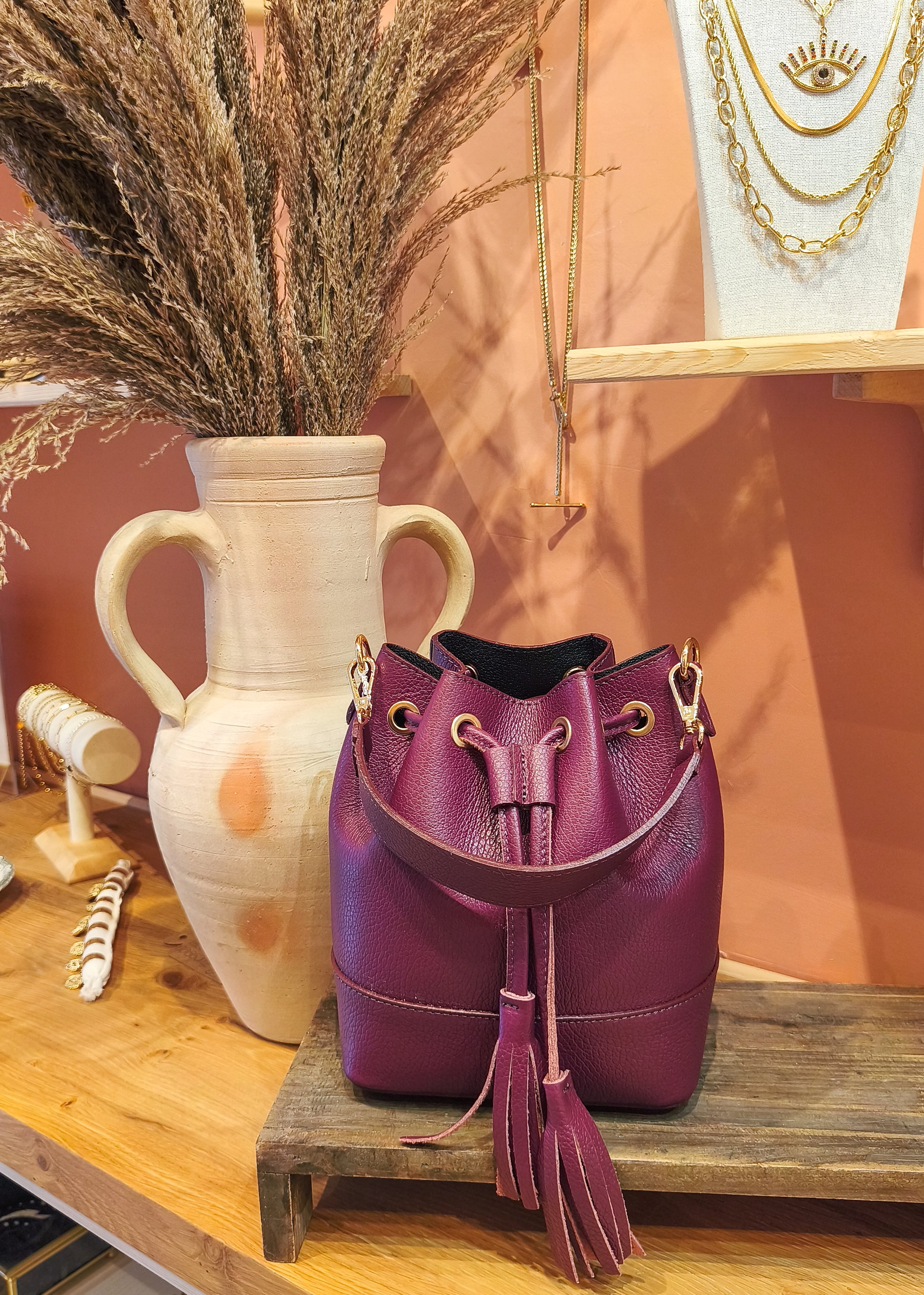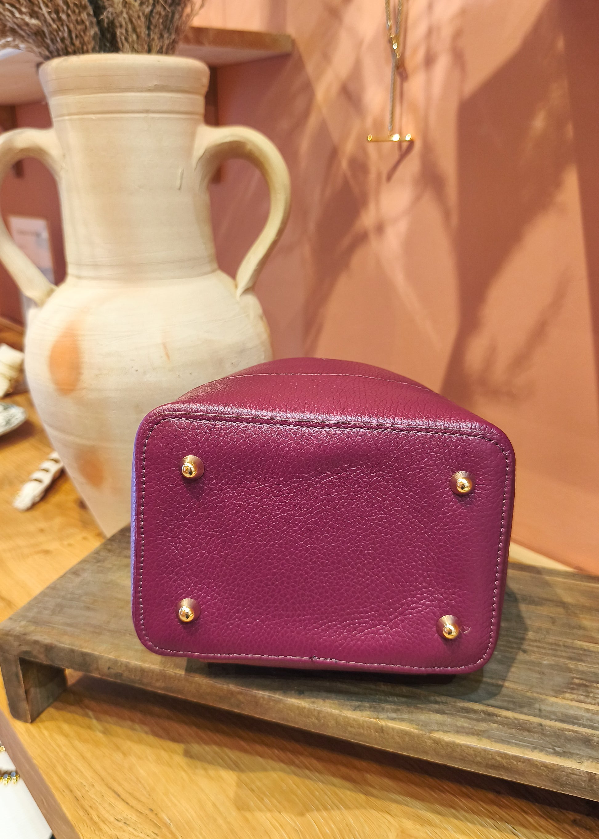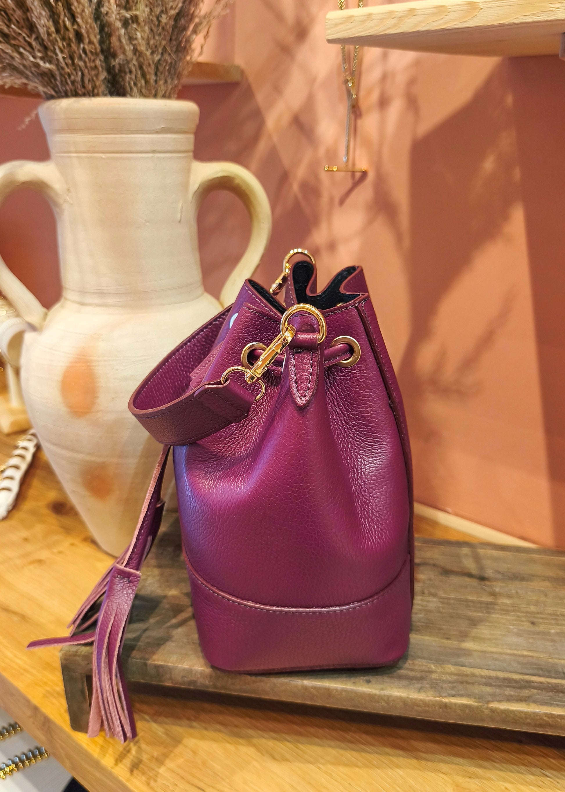 Sac bourse en cuir grainé bordeaux 👛